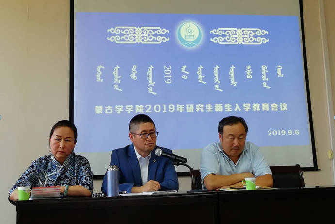 9月6日上午举行的导师生见面会,学院领导、硕博士生导师、新入学研究生百余人参加。会议由教务科研办公室主任富荣老师主持。会上首先介绍了各位导师,其次让新生一一自我介绍。导师代表著名诗人那·乌力吉德力格尔老师、2019级博士生代表乌云吉如何、2019级硕士生代表宝勒尔额尔登、在读硕士生代表布仁巴图分别作了精彩发言。