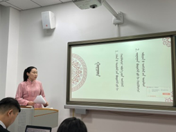 最后、各位评委老师讨论研究之后、以专业角度给出了评分。钦德木尼老师宣读了获奖名单。首届“智慧之钥匙”本科生学术论坛中获得一等奖的2名同学是,2019级蒙文一班的嘎力巴和2019级翻译班的新吉力吐;获得二等奖的4名同学是,2019级翻译班白斯琴、2019级蒙文二班高义汗、2019级蒙文一班木希义勒、2019级蒙文三班澈勒木格;获得三等奖的6名同学是,2019级二班胡倩倩、 2019级翻译班的海丽丽、2020级蒙文二班新世纪、2019级翻译班乌都日娜、2019级蒙文一班哈那格拉、2019级蒙文二班李彩虹等同学;阿其拉、韩桂荣、其乐格日、图娜勒、海霞、吴小华、伊格希格、孟根呼雅嘎、温苏日古嘎等其余参赛同学们获得了优秀奖。