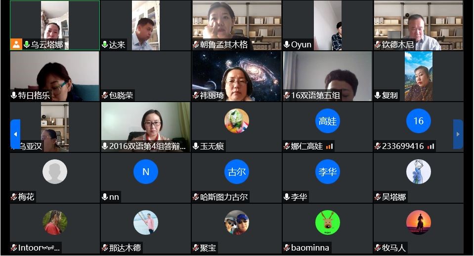5月12日上午8:00 —— 12:00,根据学校疫情防控期间毕业生相关工作要求,伟德国际英国蒙汉双语专业2020届本科毕业生进行在线论文答辩。上午8:00 —— 8:30,答辩委员会全体成员开会,由系主任乌云塔娜主持会议,会议上强调答辩工作的重要性与注意事项。